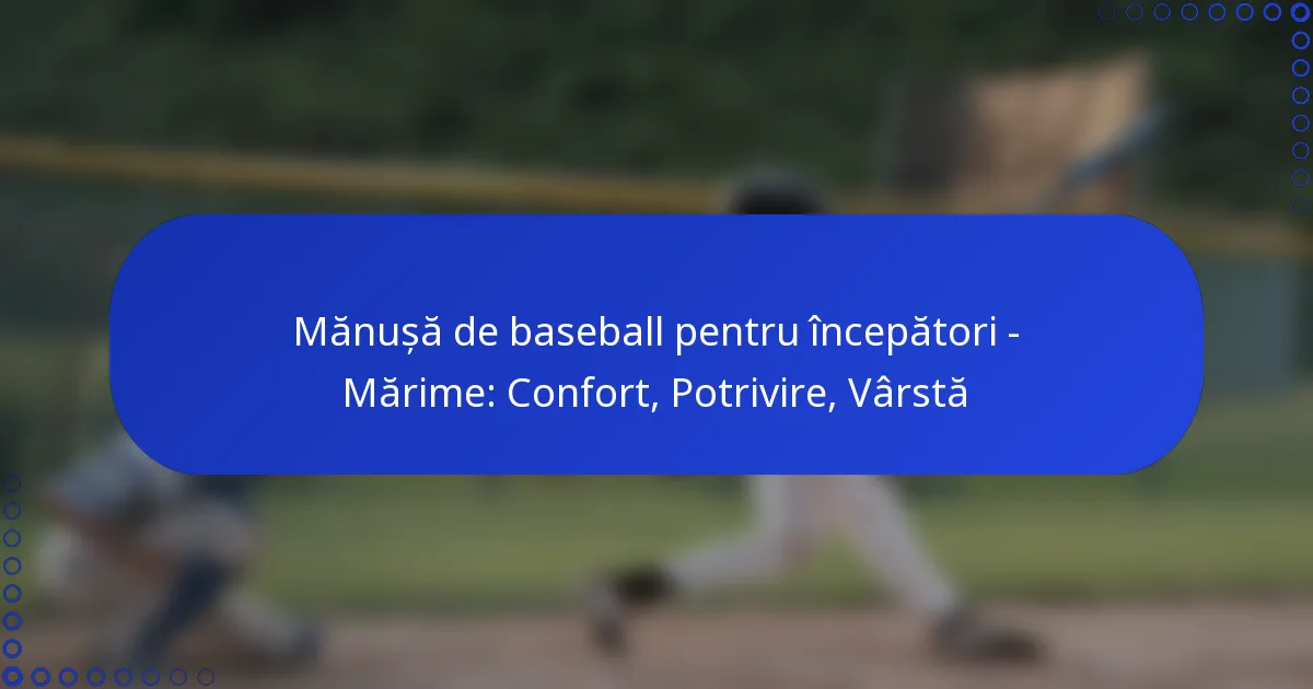 Selectarea mărimii potrivite a mănușii de softball pentru tineri este esențială pentru confort și performanță, deoarece se corelează direct cu vârsta și dimensiunea mâinii jucătorului. O mănușă bine ajustată nu doar că îmbunătățește manipularea mingii, dar permite și tinerilor sportivi să se concentreze asupra jocului lor fără distragere. În plus, diferite poziții pe teren pot necesita mărimi specifice de mănuși pentru a optimiza jucabilitatea.